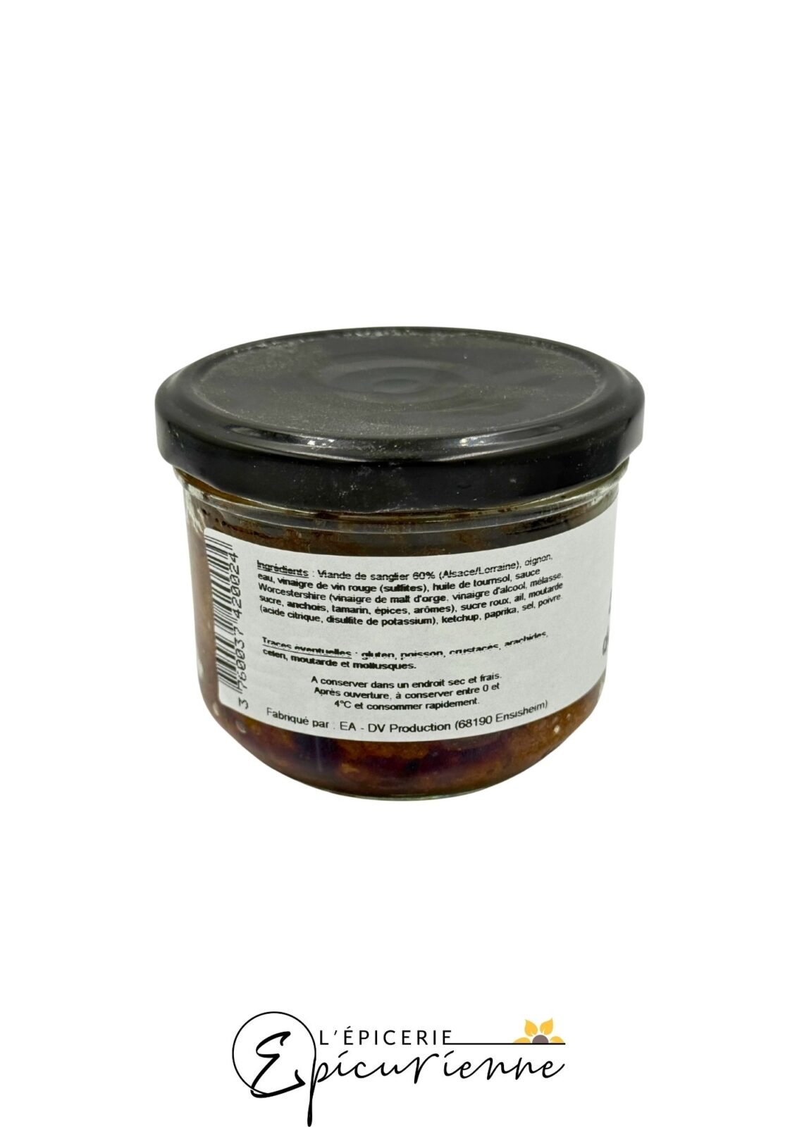 effiloché de sanglier, gibier alsacien, Les Recettes de Bichette, tartinable de sanglier, apéritif gourmand, viande de sanglier, recette artisanale, cuisine du gibier