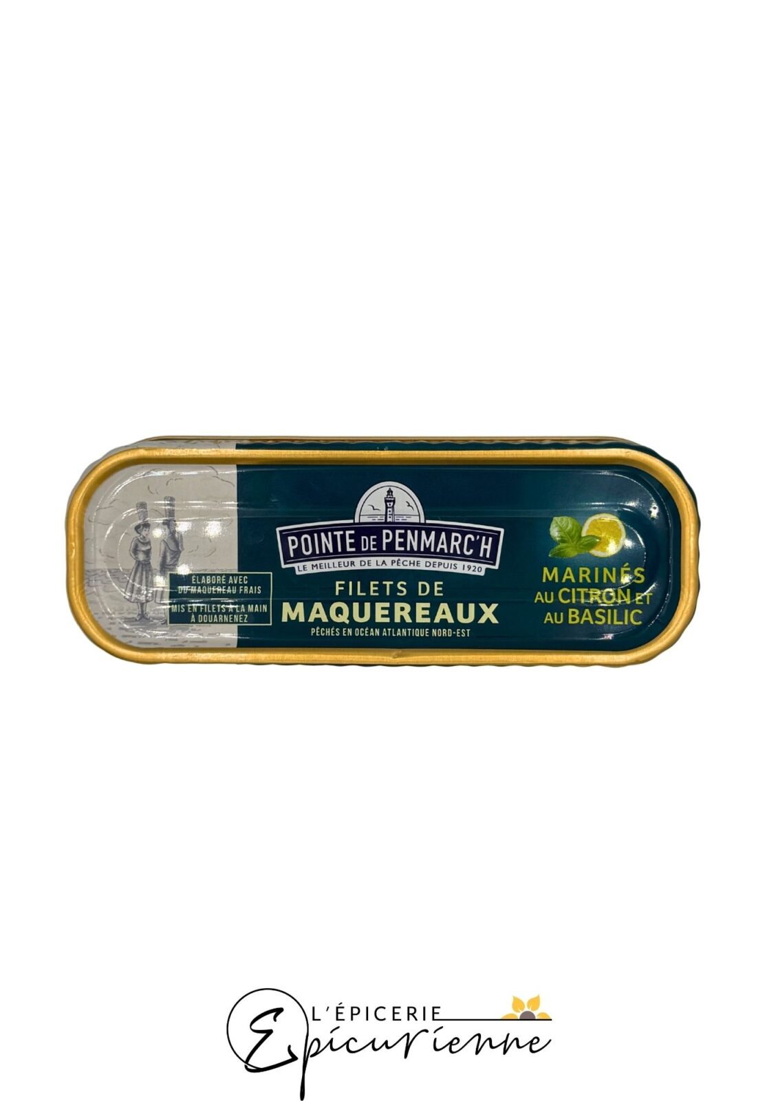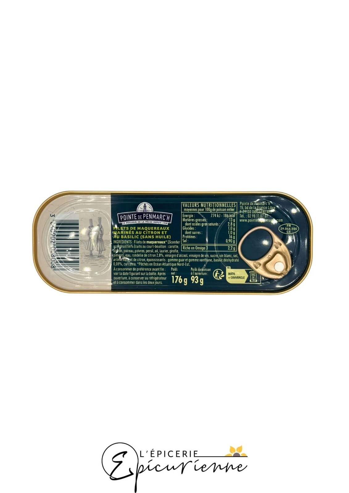 Depuis 1920, la maison Pointe de Penmarc’h perpétue en Bretagne l’art de la conserverie. Installée à Douarnenez, elle sélectionne des poissons issus de pêches responsables. Les maquereaux proviennent des eaux atlantiques, réputées pour leur qualité. Après préparation, les filets sont marinés dans du jus de citron frais et quelques aromates. Ensuite, le basilic vient enrichir la recette en ajoutant une touche végétale. Au nez, dominent des notes citronnées et herbacées. En bouche, l’attaque est vive, suivie d’une chair moelleuse. Enfin, la fraîcheur du basilic conclut la dégustation avec délicatesse.