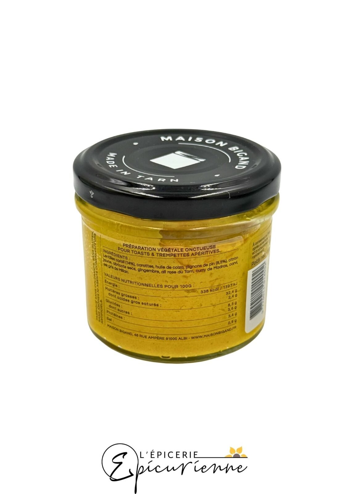 tartinable lentilles corail, pignons et curry, Maison Bigand, tartinade végétale, apéritif gourmand, cuisine végétarienne, dip apéro, pain grillé, légumes rôtis
