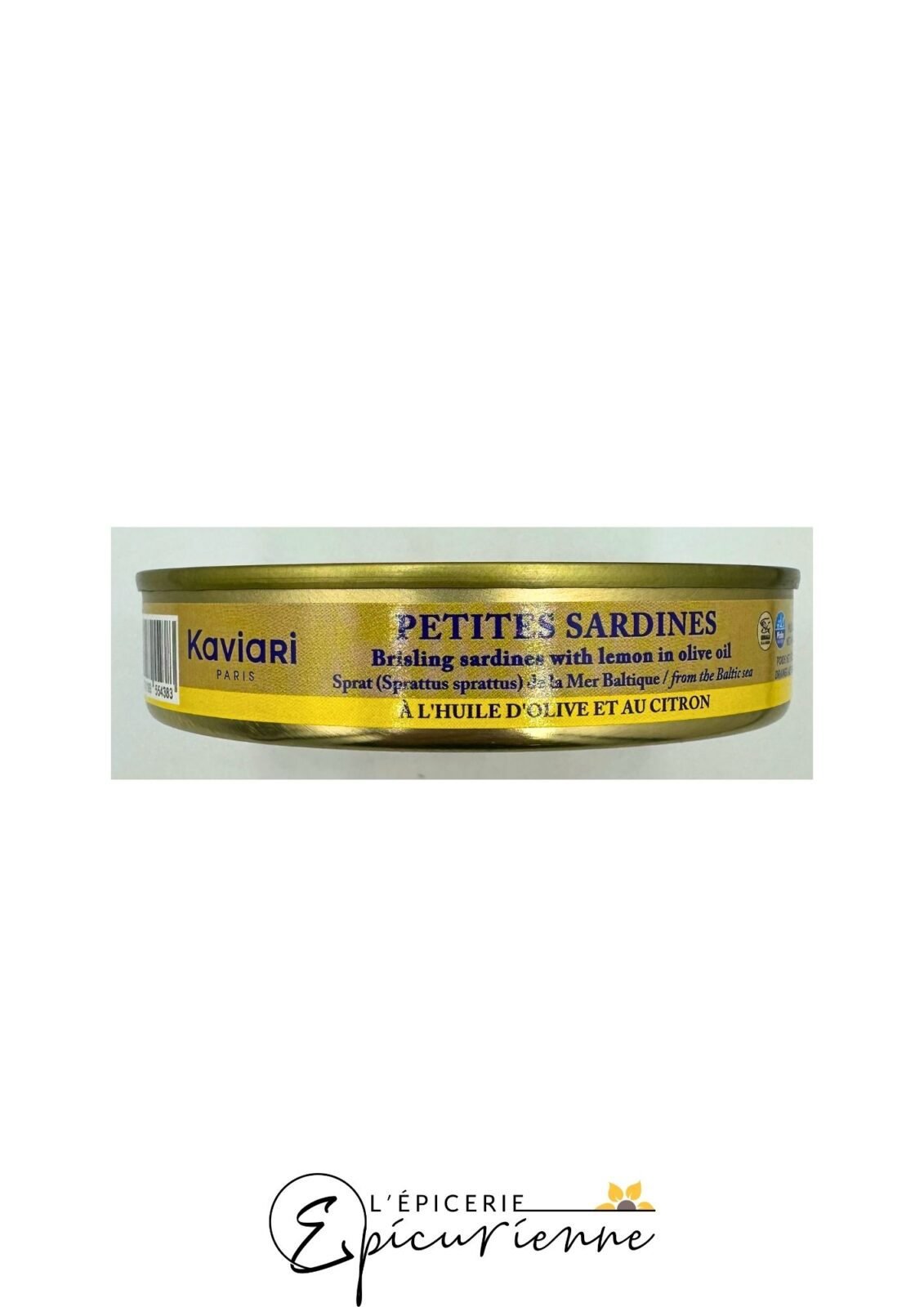 Les Petites sardines à l’huile d’olive et au citron – Kaviari offrent une alliance fine entre fraîcheur marine et vivacité citronnée. Ces sprats de la mer Baltique, sélectionnés pour leur chair tendre, sont préparés avec soin et marinés dans une huile d’olive délicatement parfumée au citron. Ainsi, chaque bouchée révèle une texture fondante, relevée d’une note acidulée qui stimule le palais sans le dominer.