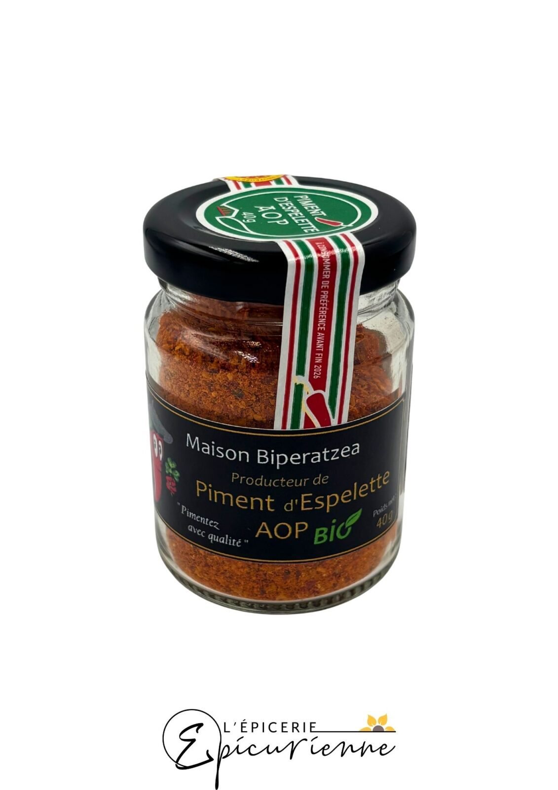 Poudre de Piment d’Espelette AOP Bio Biper Xokoa, condiment basque, épice fruitée et douce, piment d’Espelette biologique, cuisine fine, épicerie terroir