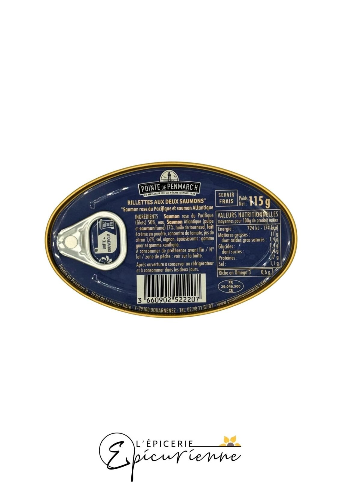 Fabriquées en Bretagne à la pointe du Guilvinec, les rillettes incarnent le savoir-faire artisanal de la conserverie fondée en 1920. Elles contiennent 66 % de saumon (dont 17 % de saumon fumé) soigneusement assaisonné d’huile de tournesol, lait écrémé, citron, oignon et tomate concentrée :contentReference[oaicite:1]{index=1}. Ce mélange allie richesse marine, fondant et légèreté acidulée.