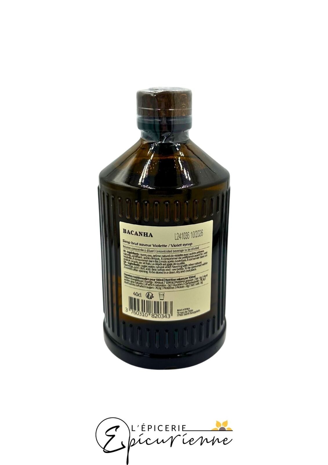 Bacanha fabrique ce sirop en France en suivant une démarche artisanale et durable. La recette associe sucre de canne biologique, eau pure et arôme naturel de violette, complétés par une pointe d’acide citrique pour l’équilibre. De plus, aucun colorant ni conservateur n’entre dans sa composition, garantissant une authenticité totale. Le parfum s’ouvre sur des notes florales délicates et sucrées. En bouche, le goût de violette est ample, velouté et persistant, rappelant les confiseries d’antan. Enfin, la bouteille en verre recyclable de 400 ml permet de préparer jusqu’à vingt boissons, tout en réduisant les emballages jetables.